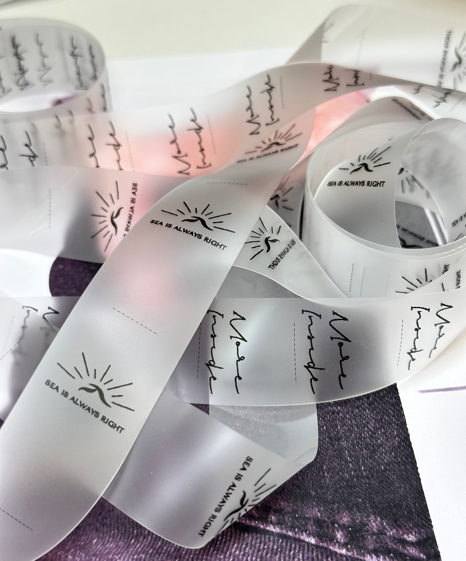 Лента матовая, полупрозрачная, приятная на ощупь, эластичная и элегантная.