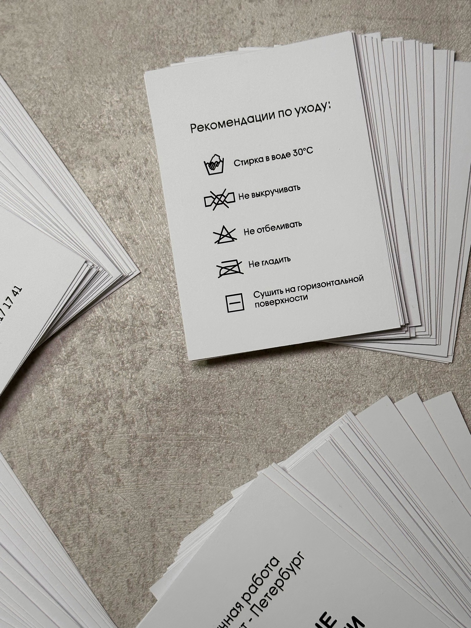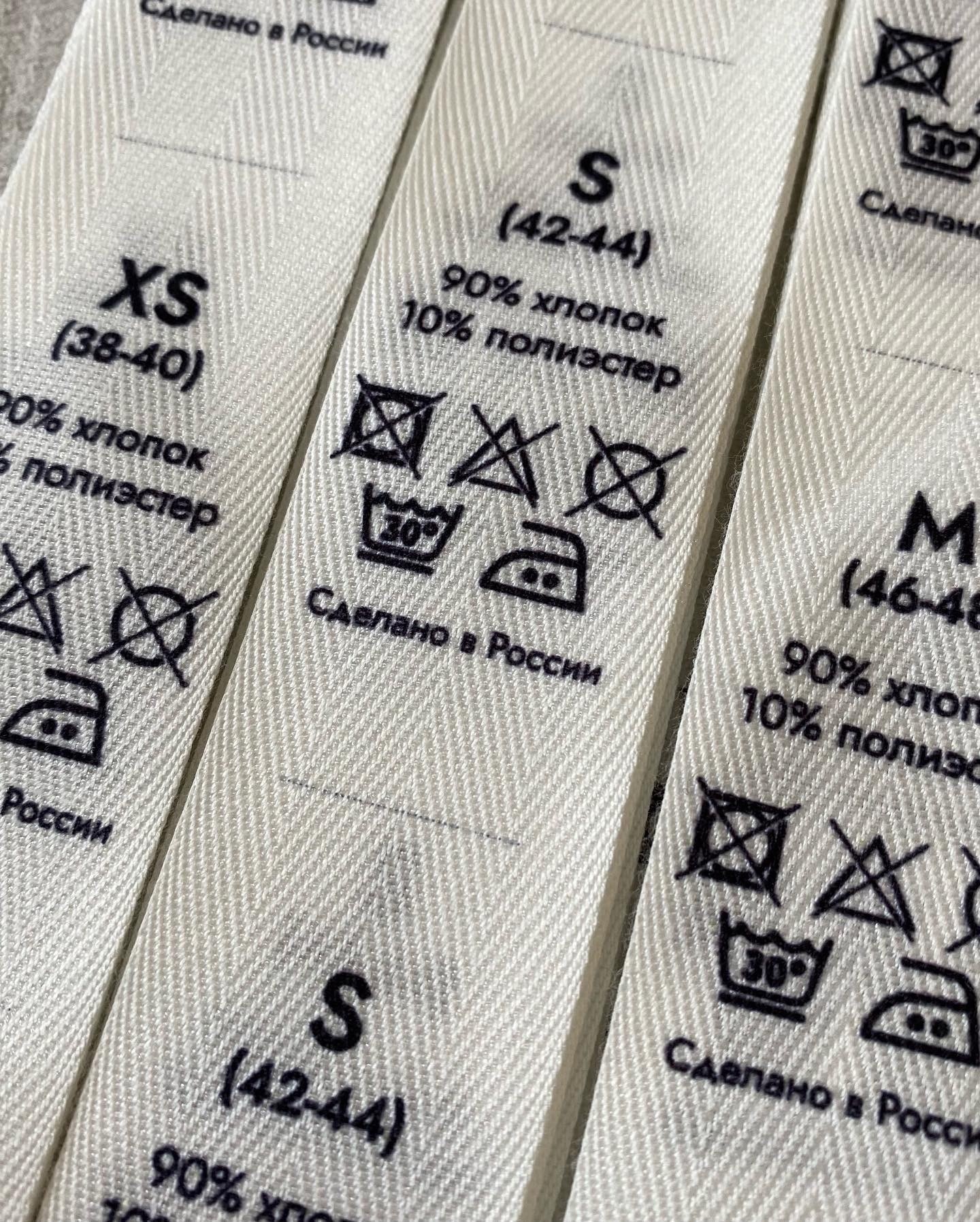 В одностороннем и двустороннем варианте, подходит для маркировки логотипом, составом и размещения ценников